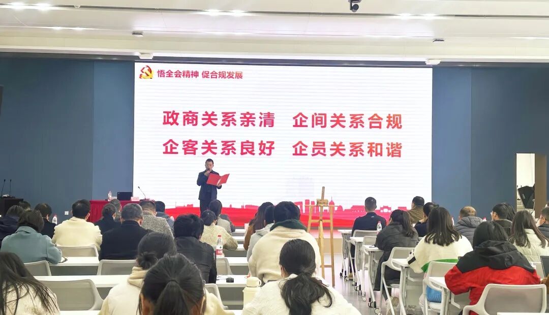 随后,原浙江省杭州市委党校副校长廖志林作了《确保基本实现社会主义现代化取得决定性进展——党的二十届四中全会精神解读》专题授课。他紧密结合浙江民营经济发展实际,运用大量鲜活案例,为党员们深入理解全会内涵、找准企业发展与国家战略的结合点提供了宝贵的实践启发。